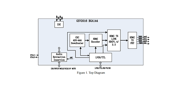 支持HDMI1.4/2.0发送 ·支持HDCP1.4 ·支持4K-Down Scaler,CSC